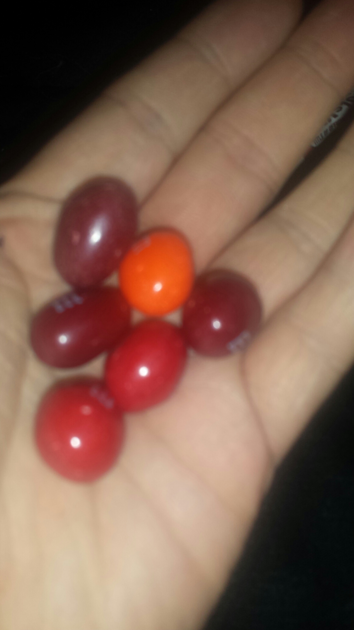 Removing them from the packet, it’s noticable how they seem to be of ‘spicy’ colours, reds and oranges and darker reds. They look similar in size to the peanut M&M’s here perhaps just a little bigger.