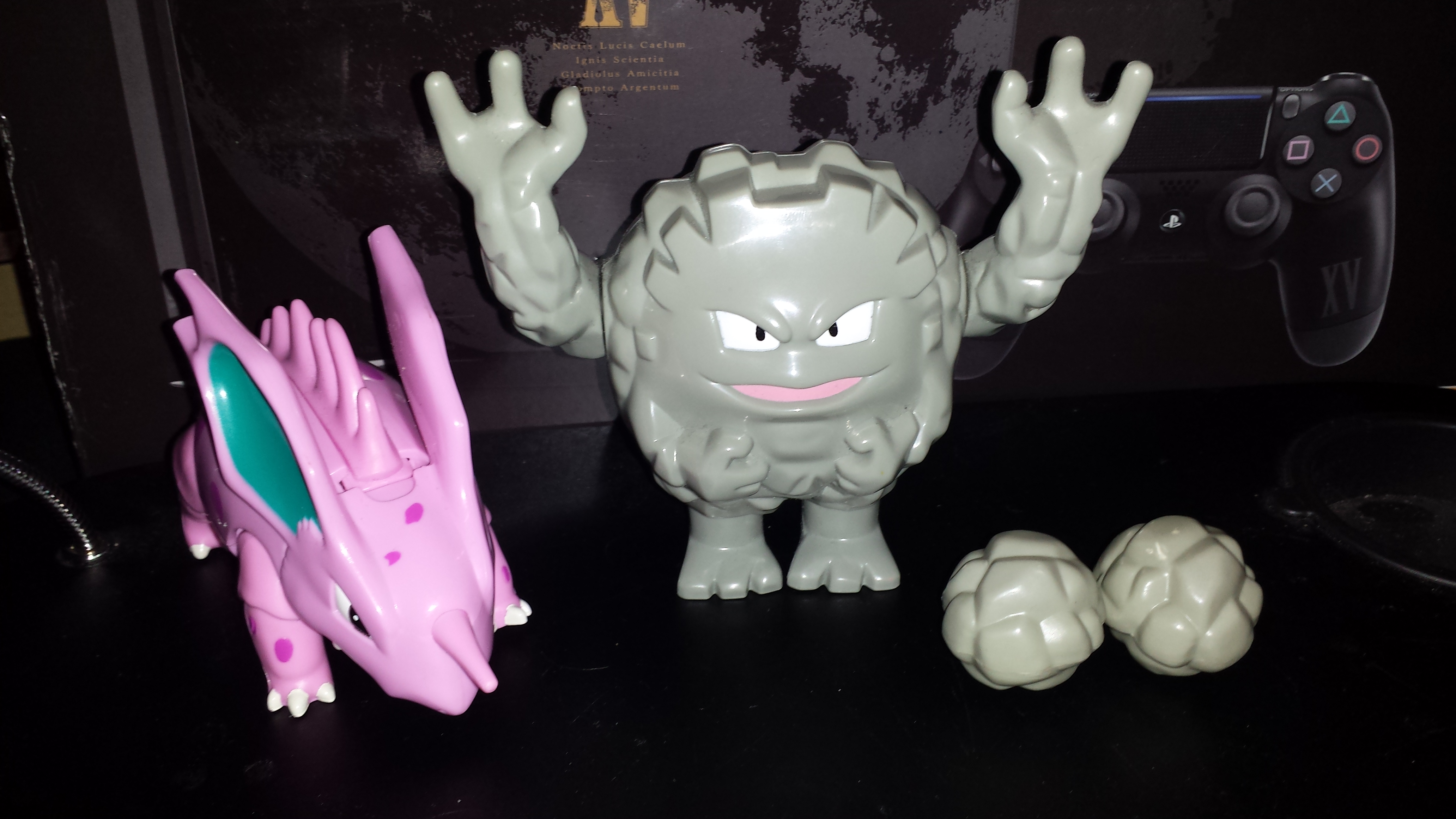 It’s Graveler and Nidorino, probably nobody’s favourite Pokémon. Now I really do like the size of these figures, and the fact they are chunky and have ‘action features’, but these two seemed to be made in a massive abundance. I actually remember seeing them in about 2005 in discount bins and stuff in Toys R Us. There were other figures in the line like an awesome looking Charizard figure that shoots fire projectiles, but they seem to be much harder to find. If look on eBay at this moment in time, someone is asking $40 for a loose Charizard, so although Graveler or Nidorino aren’t anywhere near as high on my list of favourite Pokémon as Charizard, they are certainly more affordable.
