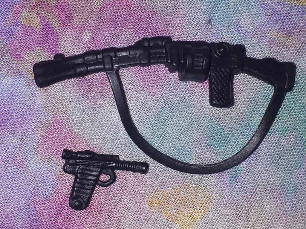 Cara Dune comes with two blasters, a rifle and a pistol. The rifle has warped a little in the packaging, but could probably be sorted by dunking in some hot water and straightening out.